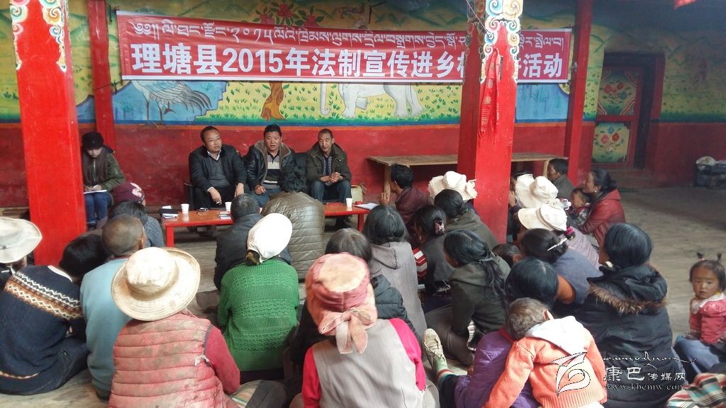 為營(yíng)造“人人學(xué)法、全民守法”的濃厚氛圍,理塘縣依托群眾工作全覆蓋及精準(zhǔn)扶貧工作,通過(guò)廣播電視播放公告、城市廣場(chǎng)懸掛標(biāo)語(yǔ)、出租車(chē)頂播放宣傳標(biāo)語(yǔ)等方式加大宣傳力度。并于2015年11月從全縣機(jī)關(guān)單位抽調(diào)57名懂雙語(yǔ)、責(zé)任心強(qiáng)、具有一定法學(xué)素養(yǎng)的人員組成6個(gè)宣講組,分別在全縣214個(gè)行政村及對(duì)縣城各鄉(xiāng)搬遷戶進(jìn)行集中宣傳。