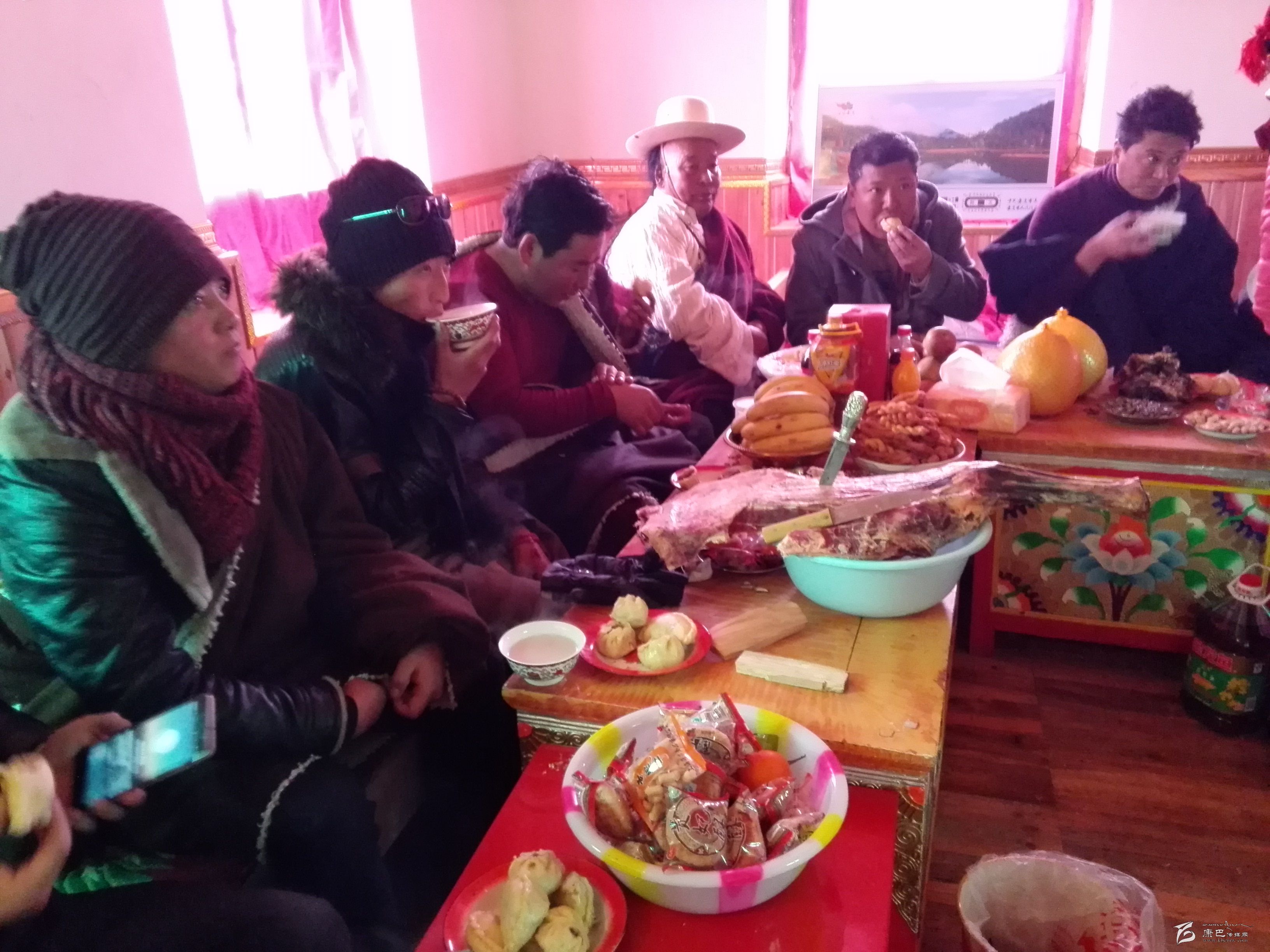“我們搬進(jìn)新家好幾天了,親戚和鄰居都要來祝賀,我們今天請(qǐng)他們來家里,分享我們搬遷新居的喜悅”。一大早,村民江巴達(dá)吉便招呼家人,把糖果、牛肉、飲料擺滿餐桌,女人打酥油茶、奶茶、炸果子。要準(zhǔn)備得豐盛一些,讓客人們感受到主人的熱情。