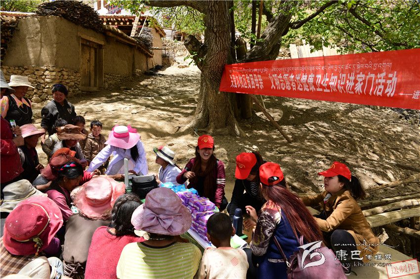 中心絨鄉(xiāng)安里頂村的四郎志瑪剛剛給地里的農(nóng)作物澆水回來(lái),就發(fā)現(xiàn)村里來(lái)了一群戴著小紅帽的“不速之客”,他們周圍聚集著提前趕來(lái)的鄉(xiāng)親。兩位穿著白大褂的“小紅帽”正在為排著長(zhǎng)隊(duì)的鄉(xiāng)親們免費(fèi)體檢,另外還有兩位戴“小紅帽”的女性志愿者召集婦女村民為她們講解健康衛(wèi)生知識(shí),演示女性衛(wèi)生用品的使用方法。
