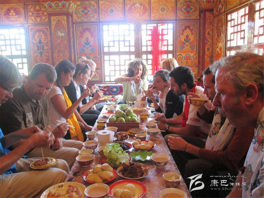 外國(guó)游客在道孚民居接待點(diǎn)就餐。