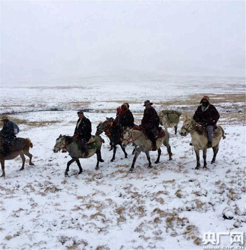 馬背宣講隊行進在風(fēng)雪宣講路上。