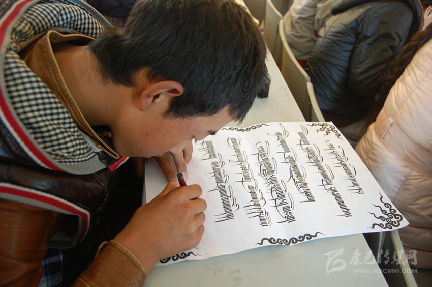 學(xué)生正在學(xué)習(xí)藏文書(shū)法。