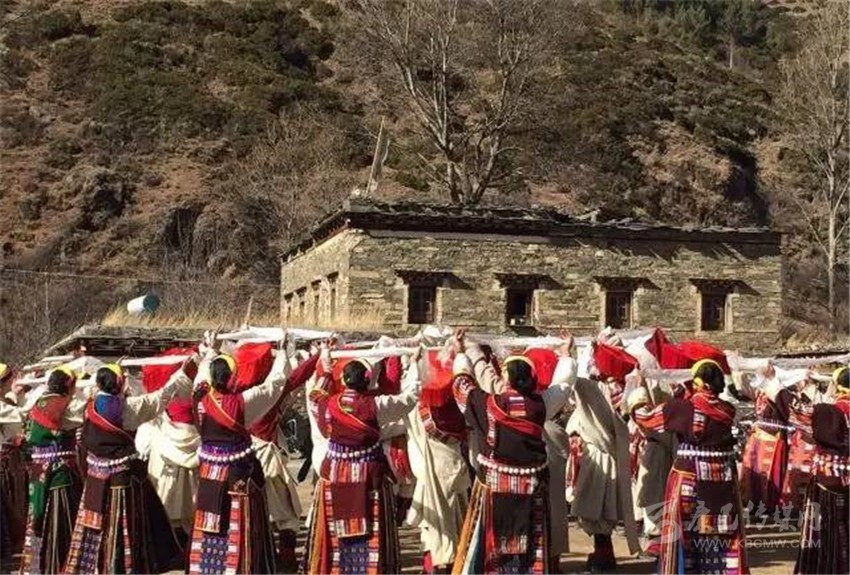 在這個只有300余人的小村,就有近60位青壯年參加了節(jié)目組織和排演,為了讓節(jié)目更加出彩,康定市文化館館長以及舞蹈編排老師,多次深入村莊,與村民同吃同住,從排演隊形開始,耐心的指導(dǎo)每一個舞步、糾正每一個動作。雖然參與人員的全部是業(yè)余演出人員,但是他們卻有著百分百的敬業(yè)精神,每天農(nóng)忙結(jié)束,大家就聚集在一處學(xué)習(xí)新動作。只要是有演出經(jīng)驗的人就會知道,數(shù)十人的群舞最難的地方就是演員之間的相互協(xié)調(diào),而這種難題只有通過反復(fù)排練才能解決。一群人只有將節(jié)目演好這樣一個堅定的信念,所以即使在寒冷的冬夜,即使要跳到凌晨一兩點鐘,也沒有人抱怨。