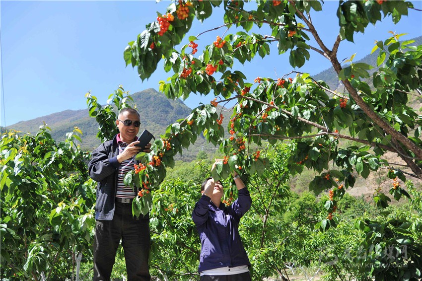 游客采摘紅櫻桃。