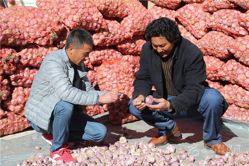 為保障村民的積極性和利益,八埡村積極協(xié)調(diào)村民們成立專業(yè)合作社,并與外地商戶簽訂收購協(xié)議,合作社負(fù)責(zé)從農(nóng)戶收購大蒜運往協(xié)議收購商家。種植戶擁珍志瑪看著自己收獲的大蒜說:“今年我家種了2畝多,合作社直接到地頭收購,這讓我們省了不少心”。