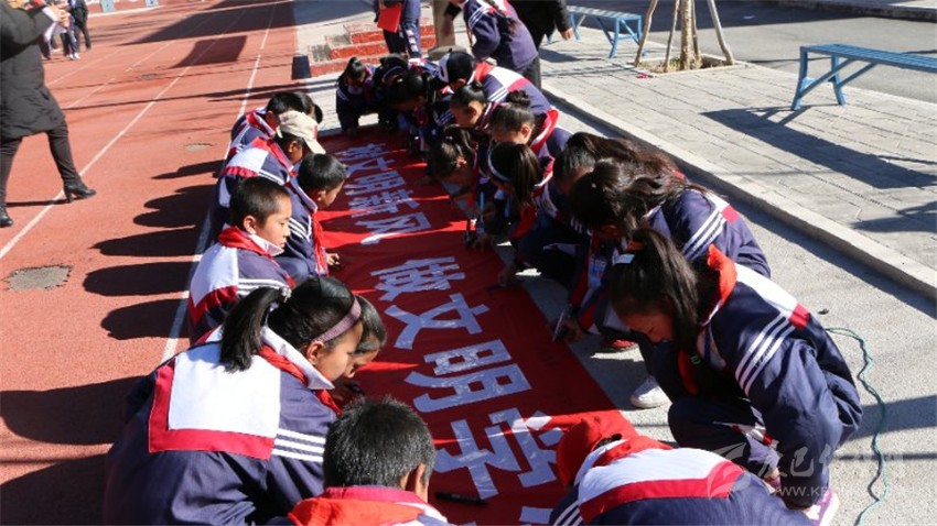 該縣第二完全小學(xué)圍繞主題開展了國旗下的講話活動。“教育肩負(fù)著向青少年播撒核心價值觀的種子,引導(dǎo)青少年“扣好人生第一??圩印钡闹厝巍!眱?yōu)秀教師代表青措拉姆作了激情澎湃的發(fā)言。她鼓勵全體同學(xué)用高遠(yuǎn)的志向、頑強(qiáng)的意志、勤勉的精神和必勝的信念,走好人生的每一步。全校學(xué)生在國旗下鄭重承諾:“我們將不斷提升和成就自己,嚴(yán)以修德,明辨是非,勤奮學(xué)習(xí),篤實(shí)做人,用青春與微笑書寫自己壯麗的人生。”