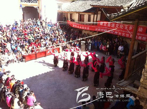 12月2日,康定縣捧塔鄉(xiāng)捧塔寺內人頭攢動,熱鬧非凡,由康定縣旅游文化局組織的送文化下鄉(xiāng)惠民演出吸引了周邊的眾多群眾前來觀看。 演出在州歌舞團演員歡快的舞蹈中拉開帷幕。一曲曲耳熟能詳的歌曲、一支支熱情洋溢的舞蹈為農牧民群眾送上了一份文化厚禮。演出結束,意猶未盡的捧塔村民說:“今天一大早我就等在這里,農村的文化生活簡單枯燥,好久沒有看到這么精彩豐富的文藝節(jié)目了,它不但豐富了我們的文化生活,還宣傳了黨的惠民政策,這樣的方式比傳統(tǒng)的開會宣傳更能讓大家知曉、熟記各項富農惠民政策,也更受大家歡迎,希望這樣的活動以后能多多舉辦。”圖為演出現場。(李瑤  攝影報道)