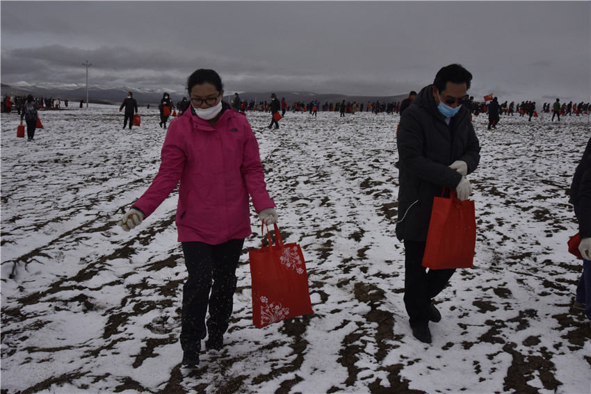 近日,受海拔和氣候條件影響的石渠縣迎來了晚春,該縣1000余名干部群眾來到距縣城20余公里的德榮瑪鄉(xiāng)生態(tài)草場保護建設示范點,開始了一場干群共同參與的種草、滅鼠行動。