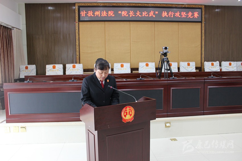 6月8日,全州基層法院“院長大比武”執(zhí)行攻堅(jiān)競賽在州中級人民法院舉行,瀘定縣人民法院院長鐘天蓉在競賽階段