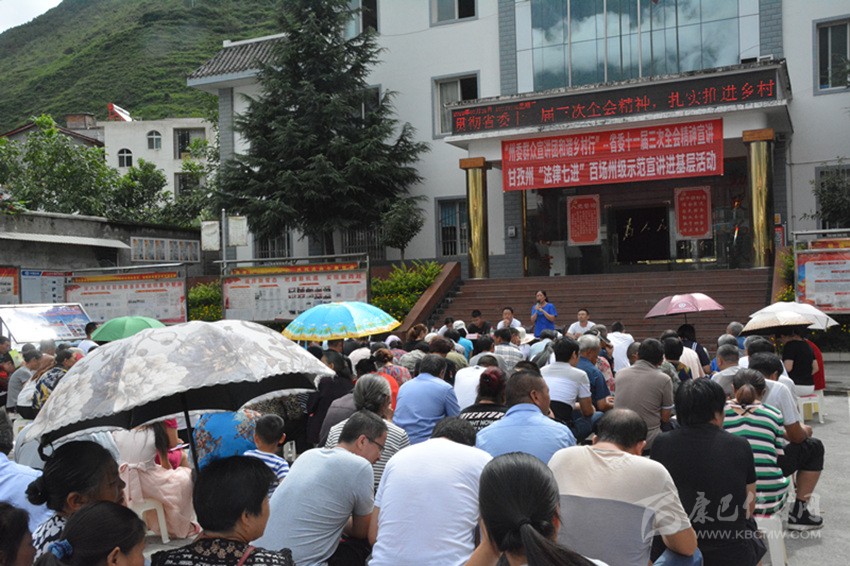本網(wǎng)訊 7月31日上午,全國優(yōu)秀基層理論宣講員、州委群眾宣講團成員、白玉縣委宣傳部常務副部長松吉尼瑪,州委普法宣講團成員澤仁巴姆等一行走進白玉縣麻絨鄉(xiāng),開展了“州委群眾宣講團和諧鄉(xiāng)村行”——省委十一屆三次全會精神宣講暨“法律七進”百場州級示范宣講進基層活動。