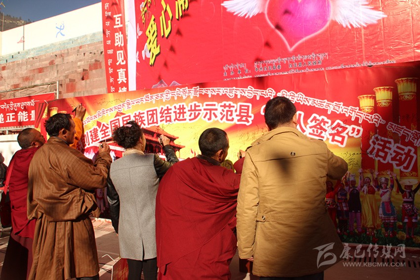 其實,在白玉,像澤稱降措這樣感人肺腑的故事絕非個案。采訪中,筆者細(xì)細(xì)梳理五年來白玉的創(chuàng)建舉措與成績,完全可以用“務(wù)實”“扎實”這四個字來形容。自2014年創(chuàng)建活動啟動以來,縣委、縣政府嚴(yán)格按照“三年創(chuàng)建、四年提升”要求,緊扣“八進(jìn)活動、共建對子”兩個關(guān)鍵,聚焦“民族團(tuán)結(jié)促發(fā)展、民族團(tuán)結(jié)促穩(wěn)定、民族團(tuán)結(jié)促民生”三大目標(biāo),采取“精準(zhǔn)安排、精準(zhǔn)施策、精心打造、精細(xì)管理”四項舉措,并通過層層簽訂目標(biāo)責(zé)任書和層層落實創(chuàng)建標(biāo)準(zhǔn)、測評指標(biāo),進(jìn)而形成了“黨委統(tǒng)一領(lǐng)導(dǎo)、黨政齊抓共管、部門各司其職、社會廣泛參與”的創(chuàng)建工作格局;采取“年度定方案、季度有督查、月月抓推進(jìn)、層層重落實”的方式,通過召開專題會、動員會、現(xiàn)場會、督導(dǎo)會、匯報會等形式,抓問題、添措施、促整改、補(bǔ)短板、求提升,一系列動真碰硬的推進(jìn),使得創(chuàng)建工作由“虛”變“實”;按照“精準(zhǔn)宣講、掛圖作戰(zhàn)、對單宣講、對村消號、定學(xué)式”的宣講思路,采取“縣到鄉(xiāng)、鄉(xiāng)進(jìn)村、村入戶、寺廟與僧尼”四個面對面等方式,并結(jié)合常態(tài)化開展的“四下鄉(xiāng)”活動,廣泛學(xué)習(xí)宣傳黨的民族理論、宗教政策、法律法規(guī)以及各項惠農(nóng)惠民政策。五年來,全縣累計出動宣講服務(wù)人員1180人次,開展宣講宣教、“四下鄉(xiāng)”活動以及民族團(tuán)結(jié)“八進(jìn)”活動多達(dá)988場次,覆蓋基層干部、農(nóng)牧民群眾和及寺廟近8萬人次,發(fā)放各類宣傳資料2.3萬余份、圖書光盤4500余本(張),贈送各種書籍4130余冊,放映電影152場次;在主要街道、繁華路段、出租車頂屏、燈箱燈桿以及干線公路沿線堡坎,設(shè)置LED屏、宣傳牌、滾動標(biāo)語和墻體標(biāo)語,推送各類創(chuàng)建信息上萬余條,在各機(jī)關(guān)、單位、醫(yī)院、學(xué)校、寺廟、鄉(xiāng)鎮(zhèn)、村組(社區(qū))設(shè)置民族團(tuán)結(jié)標(biāo)語、宣傳櫥窗、展板和文化墻,推出各類宣傳欄2145個、宣傳展板 435個;在縣級宣傳平臺開設(shè)專欄,完成各類主題宣傳300余場次;舉辦創(chuàng)建“萬人簽名”、鍋莊節(jié)、演講比賽、籃球友誼賽、知識競賽、文藝演出等各類民族團(tuán)結(jié)主題活動近20場,實現(xiàn)了創(chuàng)建宣講宣傳宣教全方位、多層面、立體式和廣覆蓋;切實將民族團(tuán)結(jié)工作與脫貧攻堅、基層黨建、群眾工作、鄉(xiāng)村治理、依法治縣等有機(jī)結(jié)合,大力開展干群結(jié)對認(rèn)親、干部聯(lián)寺聯(lián)僧、支部共建共創(chuàng)以及警民共建等活動;切實在廣大農(nóng)牧民群眾、幫扶援建隊伍、宗教寺院、學(xué)校師生、企業(yè)以及部隊中發(fā)現(xiàn)典型、宣傳典型,進(jìn)而在全縣上下形成了“學(xué)先進(jìn)、趕先進(jìn)、當(dāng)標(biāo)兵”的濃厚氛圍;采取政策傾斜、整合項目、配套資金等措施,狠抓示范點規(guī)范化建設(shè)。目前,全縣所有鄉(xiāng)(鎮(zhèn))、縣級黨政機(jī)關(guān)、武警部隊,45%以上的村(社區(qū))、企事業(yè)單位和寺廟已成為民族團(tuán)結(jié)進(jìn)步示范地區(qū)或示范單位;……精準(zhǔn)發(fā)力、持續(xù)給力的創(chuàng)建活動,有效形成了創(chuàng)建活動“人人參與、人人推動、人人負(fù)責(zé)、人人共享”的喜人局面。