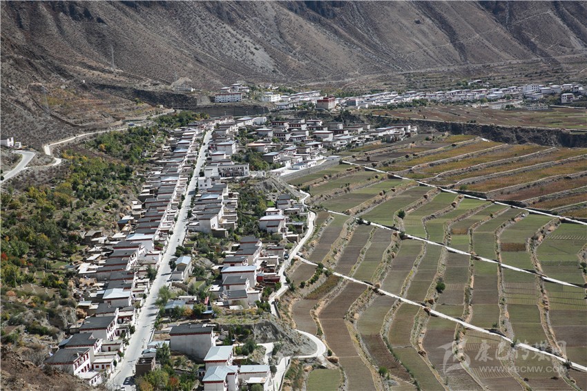作為處于高山峽谷間的得榮縣鄉(xiāng)村,村民大多生活在懸崖峭壁上,或地質(zhì)災(zāi)害嚴(yán)重的地區(qū),生存條件極差,為了徹底斬除窮根,縣委、縣政府把開發(fā)的目光投向了地勢(shì)相對(duì)平坦的因都?jí)巍?1月10日,記者再訪因都?jí)巍3醵囊蚨級(jí)侮?yáng)光燦爛,溫暖如春。一棟棟民居、一層層梯田橫臥在青山綠水間,蔚為壯觀。農(nóng)閑季節(jié),村民們愜意地坐在自家庭院的亭子里,喝著酥油茶、品嘗著藏橘、梨子、蘋果和核桃。村道兩旁的藏橘碩果滿枝頭,寬敞的街道、靚麗的民居,一幅壯美的富春山居圖在金沙江畔徐徐展開。