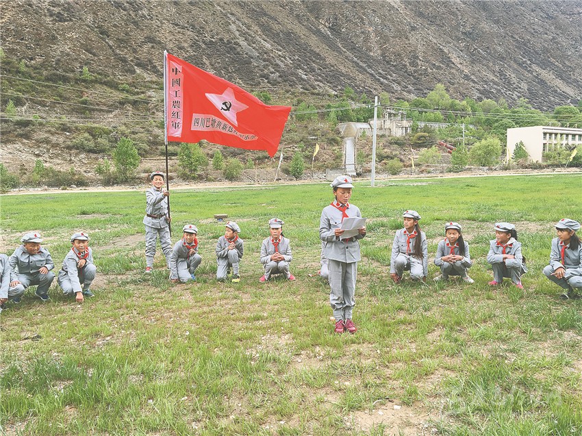 在巴塘,紅色教育是各個學校的“必修課”。巴塘金弦子小學少年軍校是巴塘縣第一所少年軍校。鮮明特色、多彩活動、創(chuàng)新教育,渲染出絢麗“紅色”。學校教務副主任陳雪秋告訴筆者,革命傳統(tǒng)不能忘,紅色精神代代傳,少年軍校是接力站,把革命火炬接續(xù)傳遞;是大熔爐,讓小小少年錘煉意志、升華靈魂,讓紅色的旗幟高高飄揚。
