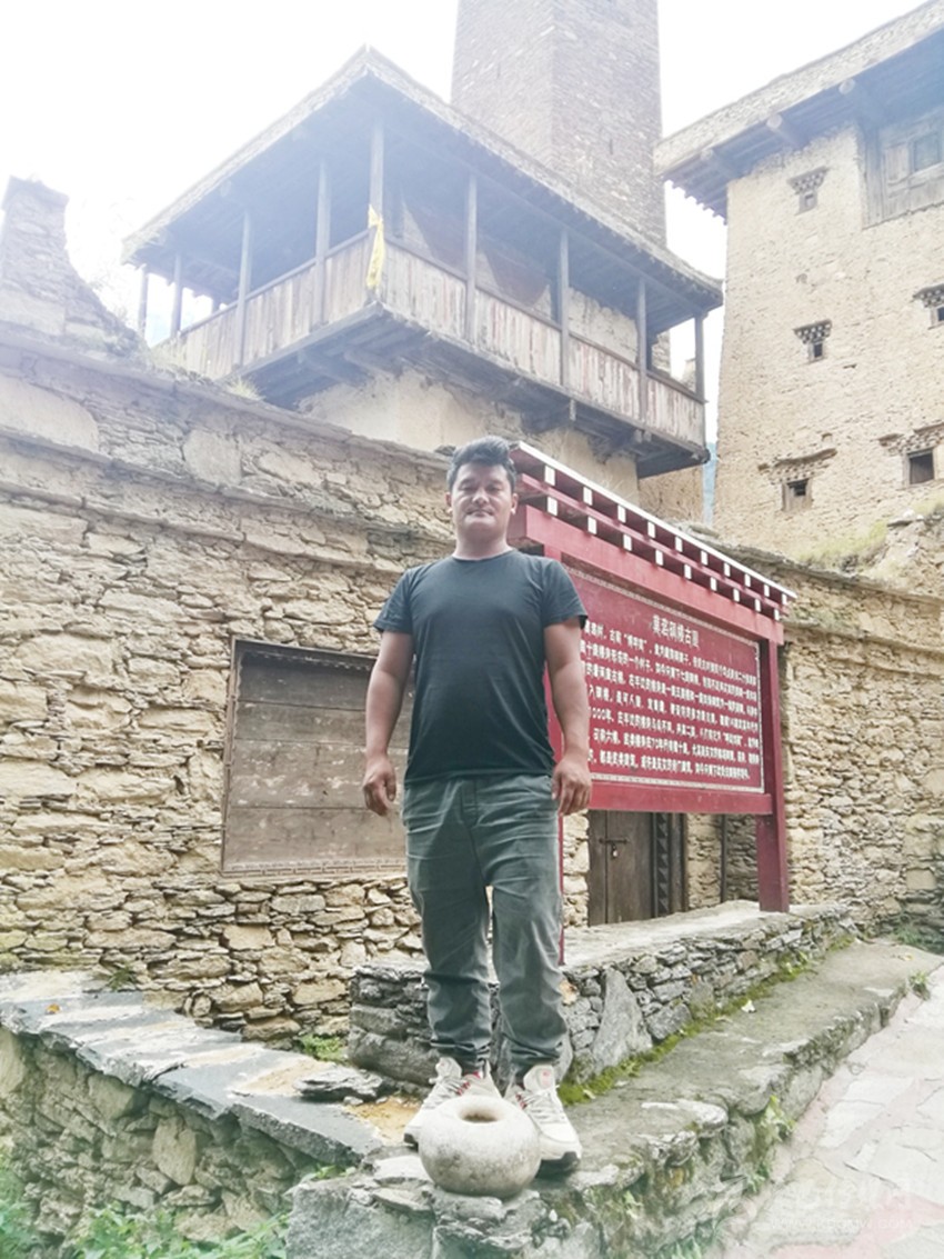 如今,莫洛村只剩下七座碉樓,其中包括殘碉和古樓。在該村1組28號,一座古樓和一座四角碉筑為一體的家碉是代表之一。從古樓可進入碉樓,是可人居、宜畜藏、便設防的多功能古屋,該古屋是全村唯一保存至今的古建筑,也是記者一行此次采訪的“主角”。