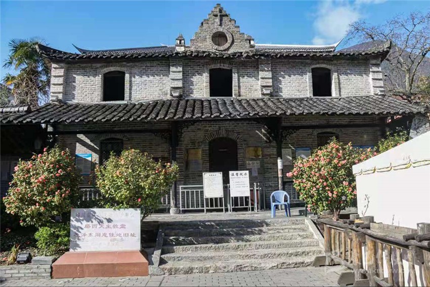 清晨,霧氣氤氳,磨西小鎮(zhèn)宛若仙境。待霧氣散去,暖陽升起,記者來到了磨西會(huì)議舊址——磨西天主教堂。