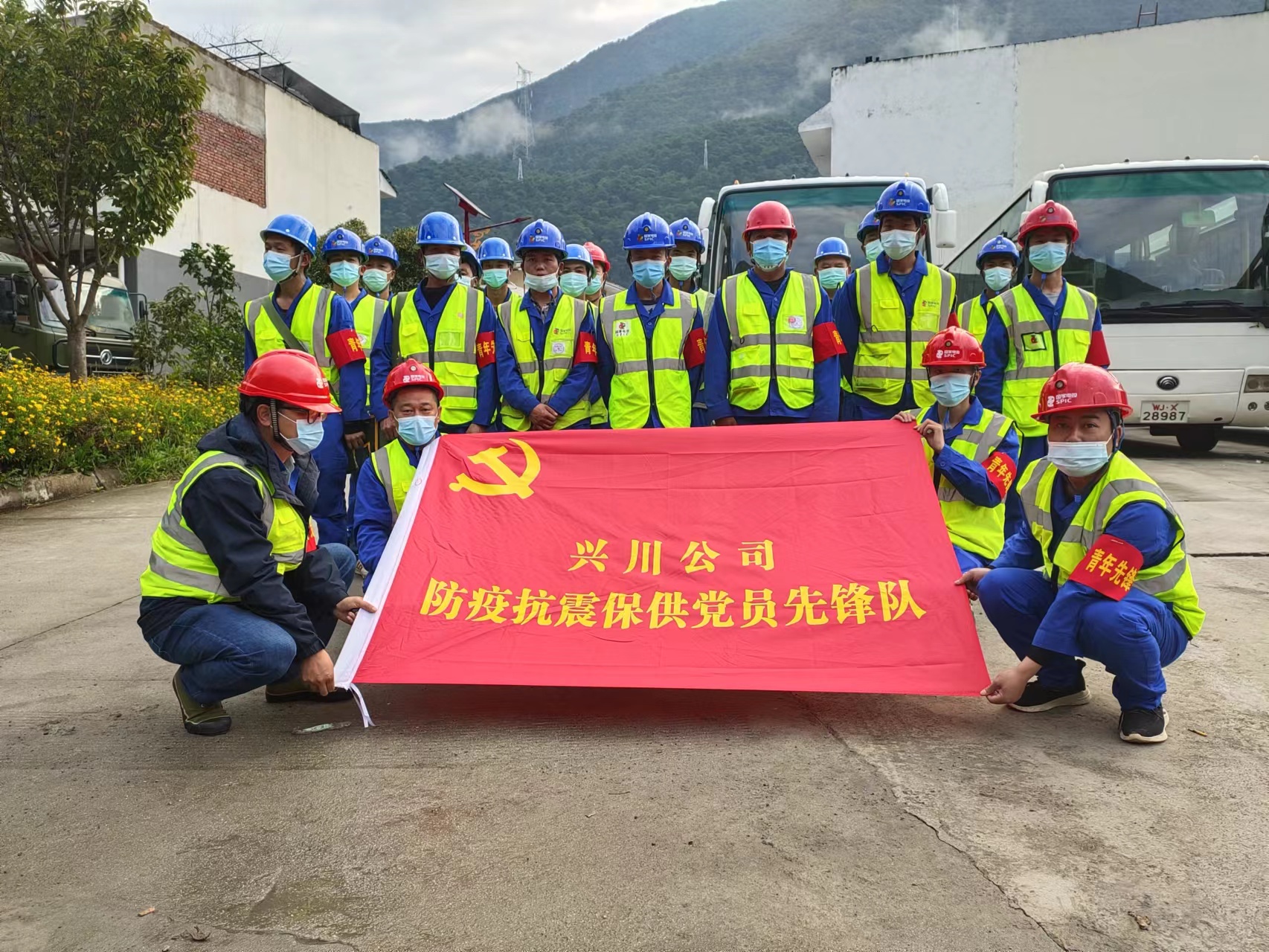 赴瀘定地震災(zāi)區(qū)開(kāi)展搶險(xiǎn)救災(zāi)的防疫抗震救災(zāi)保供黨員先鋒隊(duì)。