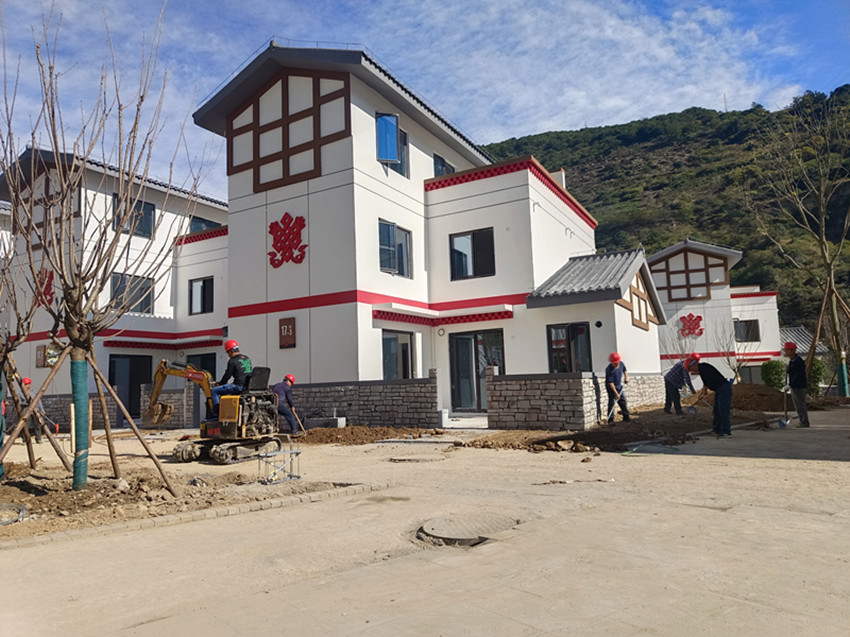 11月5日,記者走進(jìn)瀘定縣德威鎮(zhèn)奎武村“9·5”瀘定地震災(zāi)后重建集中安置點(diǎn),只見一幢幢繪有“如意結(jié)”和穿斗裝飾等瀘定傳統(tǒng)建筑元素以及“瀘定紅”“紅飄帶”等民族特色的安置房沿大渡河畔依次排開,一條條寬敞平整的水泥硬化道路將這些風(fēng)貌一致、戶型合理、結(jié)構(gòu)安全的安置房屋串聯(lián)起來(lái)。幾十名工人正在安置點(diǎn)內(nèi)忙碌,有的在鋪設(shè)路面、有的在栽種綠化樹、有的在搬運(yùn)廢渣……,拿到鑰匙的部分村民正在進(jìn)行室內(nèi)裝修,現(xiàn)場(chǎng)一派繁忙景象。
