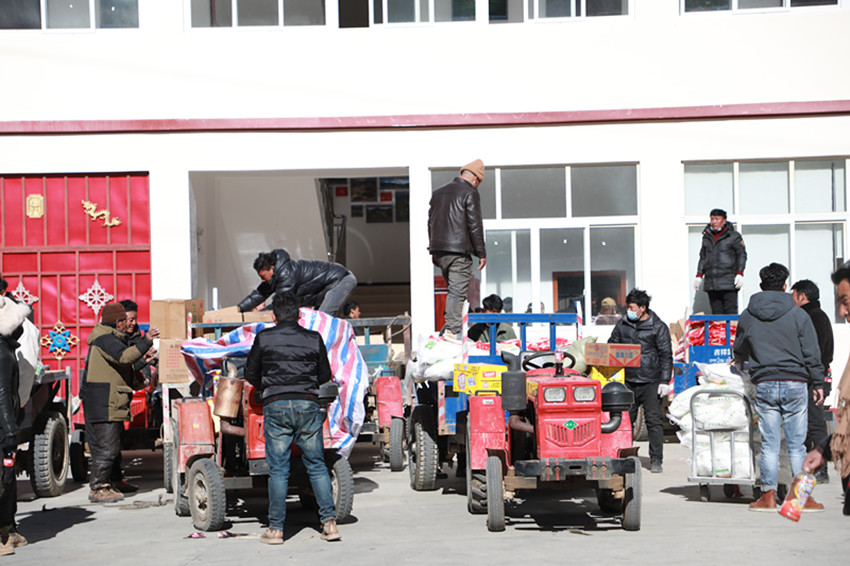 “今天我們村的17戶村民來領(lǐng)物資,臨近春節(jié)了,這些生活用品的發(fā)放真是太及時(shí)了,感謝黨和政府的關(guān)懷,我們的生活真是越來越好了?!睙峒余l(xiāng)拉巴村村民昂布開心地說。