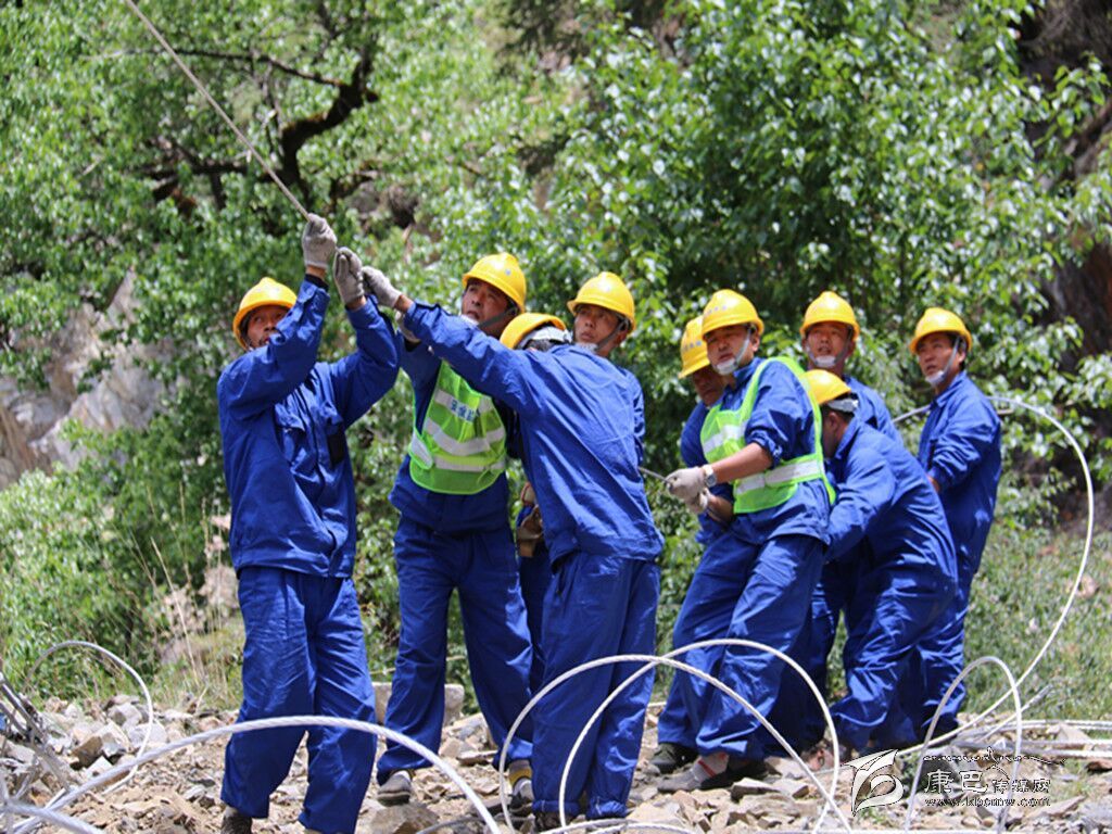 為了圓農(nóng)牧民通電夢,甘電公司誓要打好“決戰(zhàn)年”戰(zhàn)役。山高、路難、溝深、水急是今年無電區(qū)電力建設現(xiàn)場的真實寫照。在甘孜高原上奮斗著來自參建的監(jiān)理、建設和施工單位共計15支隊伍,他們和高原惡劣的氣候抗衡著,他們用“奮斗”二字譜寫著一首“電力人之歌”,為無電地區(qū)的藏族百姓早日通電打好了“決戰(zhàn)年”的戰(zhàn)役。在甘孜州各縣條件艱苦的無電地區(qū)工程建設點,隨處可見身著國網(wǎng)標志的身影。在色達、甘孜、石渠、理塘、巴塘、雅江等邊遠的“無電地區(qū)”施工現(xiàn)場,電力建設者們,頂寒風,斗冰雪,與惡劣環(huán)境抗衡,立塔架線,每天早出晚歸,完成一項又一項“難啃”的工程,夜晚燒堆篝火取暖,次日再次奔赴施工現(xiàn)場。這樣的“辛苦”記者在采訪過程中也見到。在雅江縣德差鄉(xiāng),手握對講機,身穿工裝的工程項目負責人龍森和他所以在的工程隊的工人們每天都是頂著烈日、冒著風雨加班加點在趕工程進度,幾個月下來,有的工人身上被太陽曬掉了幾層皮。可是他們從來沒有喊一聲苦,喊一聲累,晴天一身汗,雨天一身泥,每到一個點都出色完成了任務。在困難和辛苦面前,龍森和工人師傅堅定的說:“再苦再累我們也受得了,只要老百姓能盡快用上電做什么都值得。這段路線的電桿已經(jīng)全部立起來了,現(xiàn)在只剩下架線的工作。我們一定要在月底之前為這兩個村通上電。”
