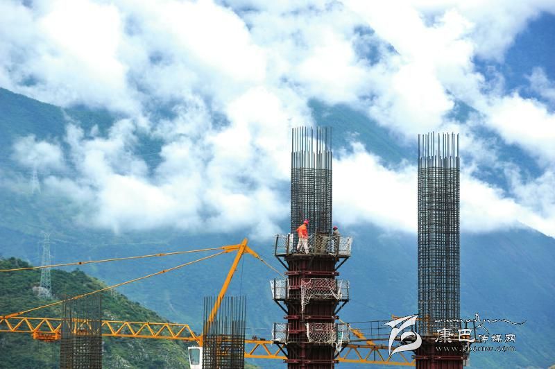 出了瀘定縣城,沿著318國(guó)道過(guò)了咱里大橋,就能夠看到半山腰上初具規(guī)模的塔基。