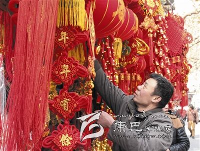 隨后,記者走進(jìn)了一家賣年貨的商鋪,看見(jiàn)寓意美好的春聯(lián)、大紅燈籠和各式彩燈等吸引了大量市民駐足選購(gòu)。店家告訴記者,由于2016年是農(nóng)歷丙申猴年,猴子的掛飾、年畫等也受到了顧客的追捧。
