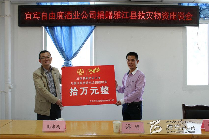 會(huì)上,彭孝剛代表宜賓自由度酒業(yè)有限公司向雅江縣慈善總會(huì)捐贈(zèng)了包括救災(zāi)帳篷、棉被等價(jià)值10萬元的物資。