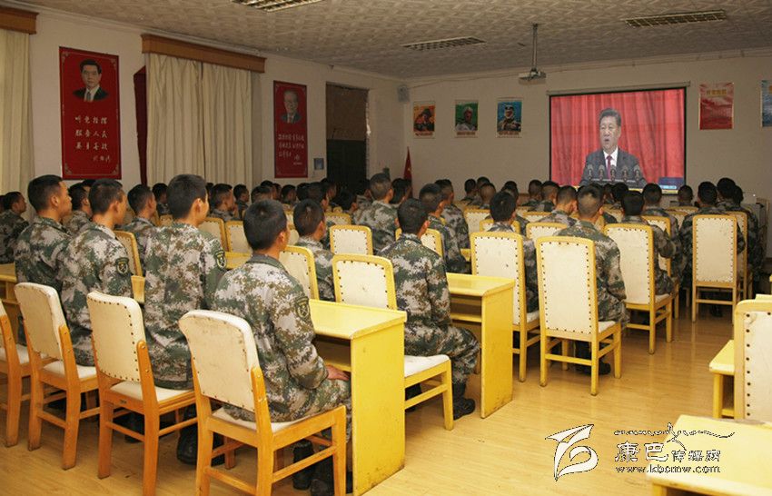甘孜軍分區(qū)官兵收看慶祝建黨95周年大會實況直播。