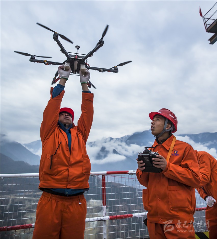 上午10時許,一架無人機(jī)從特大橋康定端的索塔頂起飛,3分鐘后,準(zhǔn)確落在雅安端的索塔頂上,隨機(jī)攜帶的先導(dǎo)索將兩座索塔相連。這根先導(dǎo)索直徑僅2毫米,蕩在數(shù)百米的高空肉眼難辨。