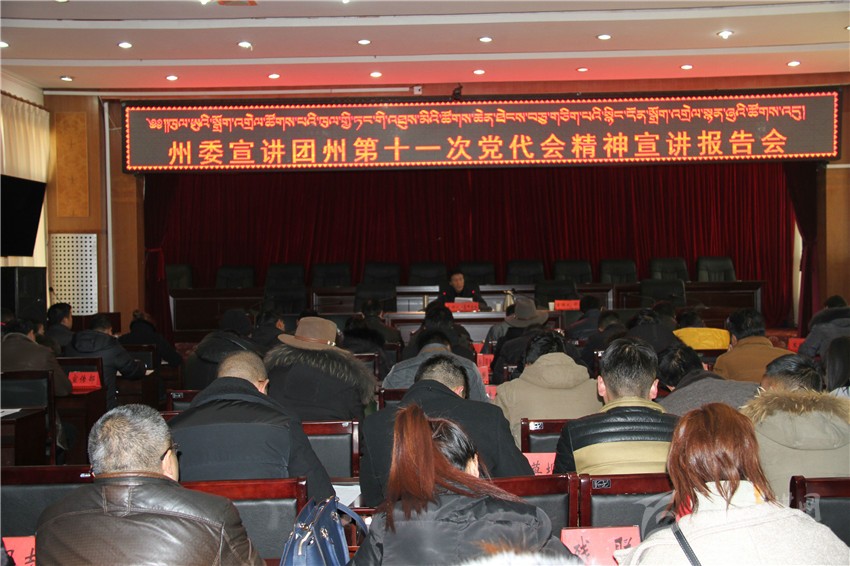會上,黃虎彪以州委書記劉成鳴在州第十一次黨代會上的報告為主題,對州第十一次黨代會精神作了系統(tǒng)全面宣講。對會議的基本情況、主要成果、主要內(nèi)容、重要意義作了系統(tǒng)說明,并結(jié)合我州實際從過去五年我州發(fā)展的主要成果和基本經(jīng)驗、當(dāng)前我州面臨的基本形勢、今后五年我州的工作思路和奮斗目標(biāo)、繼續(xù)堅持全面從嚴(yán)治黨等方面對黨代會精神作了系統(tǒng)全面解讀。黃虎彪說:過去五年是我州發(fā)展進(jìn)程中綜合實力提升最快、基礎(chǔ)設(shè)施改善最大、民生改善最好、群眾得到實惠最多的五年;當(dāng)前面臨的形勢時隨著國家區(qū)域總體發(fā)展戰(zhàn)略的深入實施,新一輪西部大開發(fā)政策的全面落實,特別是中央第六次西藏工作座談會出臺支持藏區(qū)經(jīng)濟(jì)社會發(fā)展和長治久安的意見,為我州加快發(fā)展提供了強大的政策支持、項目支持和資金支持;今后五年的目標(biāo)是全面消除絕對貧困,18個縣(市)全部“摘帽”,1360個貧困村全部退出,19.74萬貧困人口全部脫貧,貧困人口發(fā)展能力不斷增強。城鄉(xiāng)居民人均可支配收入接近全省平均水平,差距明顯縮小,中等收入人口比重上升。