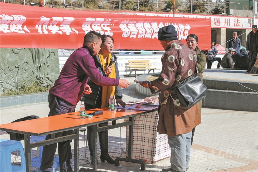 白玉縣集中開(kāi)展了政策文化衛(wèi)生科技法律集中服務(wù)“五下鄉(xiāng)”活動(dòng),在嚴(yán)寒中為近2000名群眾送去了溫暖?;顒?dòng)中,由省級(jí)宣講員松吉尼瑪帶隊(duì)的政策宣講組,用通俗易懂的“土話(huà)”、民間諺語(yǔ),為群眾講解了脫貧攻堅(jiān)等政策。同時(shí),新組建的縣藝術(shù)團(tuán)送上了精彩的節(jié)目。由縣人民醫(yī)院、藏醫(yī)院等單位組成的“送衛(wèi)生”服務(wù)隊(duì)開(kāi)展了現(xiàn)場(chǎng)義診活動(dòng),免費(fèi)為群眾提供醫(yī)療服務(wù)?!八涂萍肌焙汀八头伞狈?wù)隊(duì)進(jìn)行了科普和法律服務(wù),獲得到場(chǎng)群眾的由衷點(diǎn)贊。