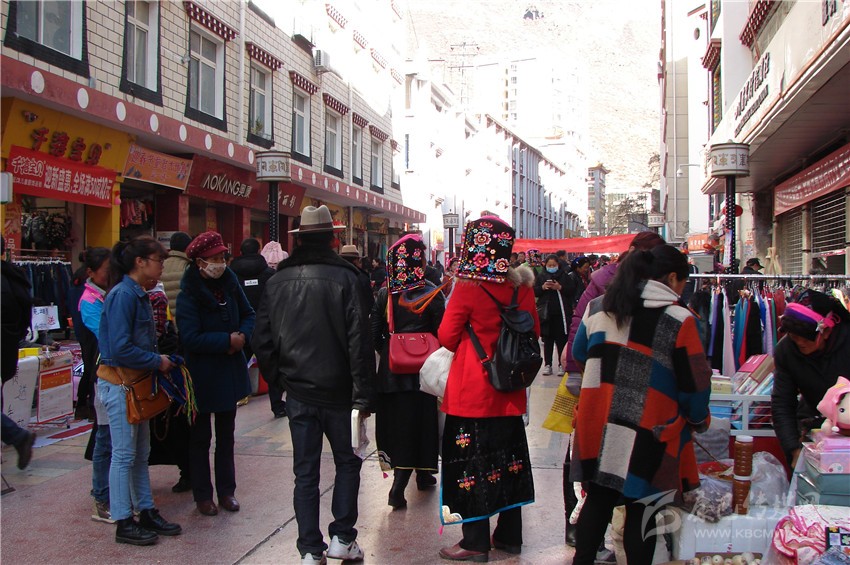 走在街上,一幅熱鬧的場景映入眼簾,熙熙攘攘的人群緩緩蠕動,來往行人大包小包的東西相互碰撞,市場內(nèi)叫賣聲、討價聲與商店歡快的音樂交織在一起,一大早街上就有幾輛工具車裝滿了飲料、糖果等副食品,老板與顧客在討價還價。家家樂超市收銀員一邊忙著收錢找零一邊對筆者說:“這段時間生意真好,老百姓來買的多,且量還不少?!眮淼讲耸袌龈菬狒[非凡,生食店、熟食店、糖果鋪前來購買年貨的顧客擠得滿滿的,大人小孩,僧人牧民各自選著自己想買的年貨,沉甸甸的年貨提在手上喜在眉梢。 (尹東云)
