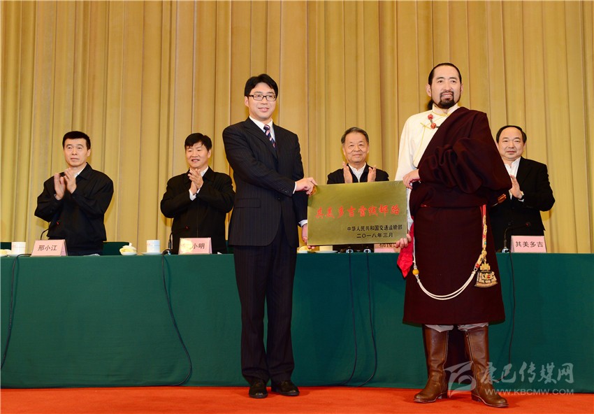 交通運(yùn)輸部黨組書(shū)記楊傳堂為“其美多吉雪線郵路”授牌。 朱正義 攝