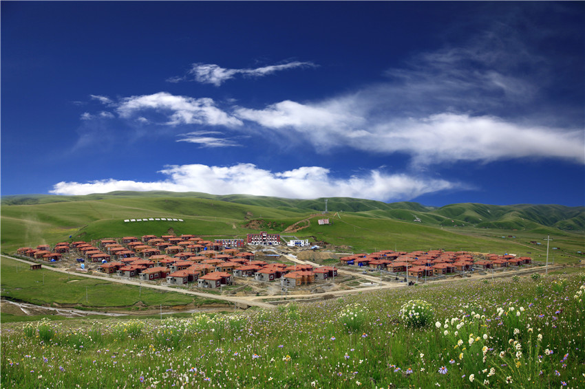 坐落在鮮花叢中的爐霍縣宗塔鄉(xiāng)牧民定居點(diǎn)。楊孝康 攝