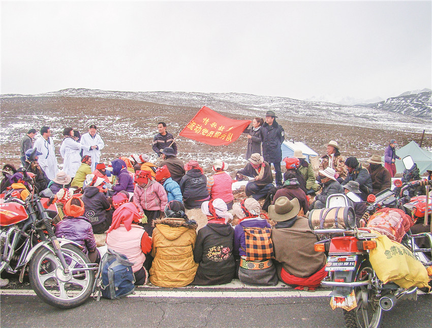 海拔四千米的蟲(chóng)草山上,也有流動(dòng)黨員服務(wù)隊(duì)的身影。