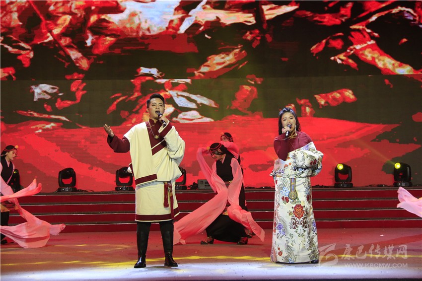 隨后以三個“新”字為主題的篇章,更是彰顯了民族風(fēng)情、甘孜風(fēng)格、時代風(fēng)貌。挖掘民族素材、彰顯民族文化,甘孜歌舞團以格薩爾傳說為“藍(lán)本”,推陳出新表演的《格薩爾仲肯》,讓民族文化熠熠生輝;民族文化需傳承,少年強則甘孜強。德格縣中學(xué)少兒則噶表演的《吉祥頌》,讓人感到后生可畏,贏得陣陣掌聲;富有激情的朗誦、珠聯(lián)璧合的配樂,《甘孜與祖國相約出發(fā)》讓現(xiàn)場觀眾真切地感受到了盛世中華,真情贊美幸福美好的新生活;歌曲大聯(lián)唱《如歌歲月》通過不同時代的代表性歌曲,唱出了甘孜兒女愛祖國、愛家鄉(xiāng),感黨恩、思奮進(jìn)的真摯情懷;由州歌舞團和爐霍、丹巴、德格、巴塘等縣藝術(shù)團聯(lián)袂上演的《幸福大家庭》,既有漢族歌舞《祝福祖國》、藏族舞蹈《放牧人》、蒙古族舞蹈《送親》、彝族舞蹈《彝家情》、回族舞蹈《花兒》,更是彰顯了民族團結(jié)的大主題,為我州創(chuàng)建全國民族團結(jié)進(jìn)步示范州擂鼓助威。