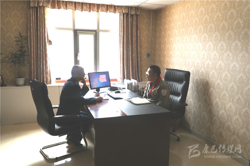 稅務局紀檢組長岑領(lǐng)(左)與鑫源礦業(yè)財務負責人劉德山(右)對接減稅降費相關(guān)工作。