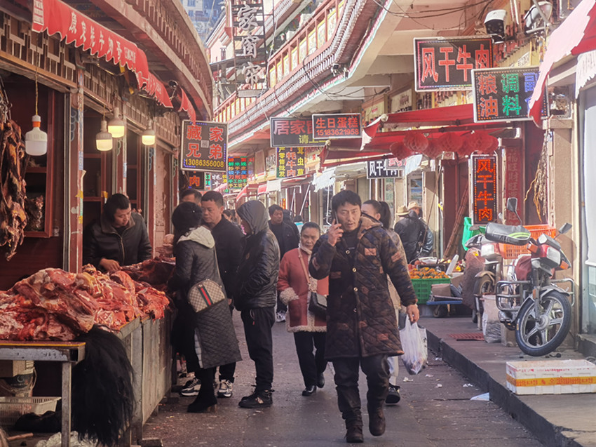 康定市高師放心鮮肉鋪的高老板這幾天尤為忙碌,每天早上四五點(diǎn)就要起床去備貨,六點(diǎn)過趕到市場(chǎng)開門營(yíng)業(yè),一直要忙到下午六七點(diǎn)。他告訴記者,臨近年關(guān),市場(chǎng)逐漸熱鬧起來,人流量明顯增多。特別是豬肉市場(chǎng),不少市民大量購買鮮豬肉制作臘肉香腸,為過年做準(zhǔn)備。