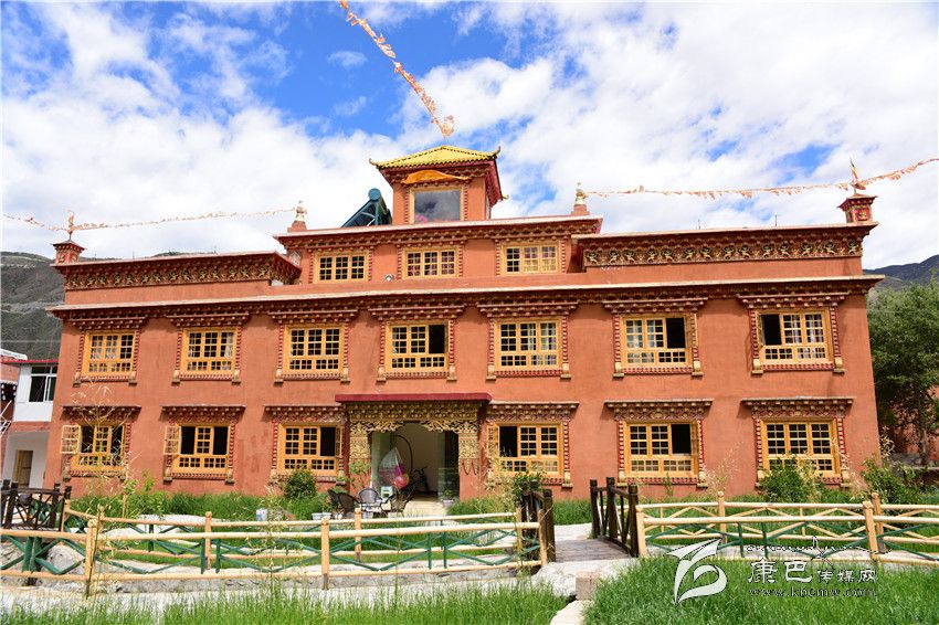 跟朗杰一樣,獨角龍村農(nóng)民多吉曲登也曾去香格里拉、稻城等地考察,回來后也搞起了民居接待,起名“德噶林”。德噶林是在原有藏房的基礎(chǔ)上進(jìn)行特色裝修而成,既保存了巴塘紅藏房原本的構(gòu)架,又融入了一些現(xiàn)代建筑元素。民居內(nèi)部的灶臺、茶桶、水缸等裝飾無不凸顯著巴塘深厚的農(nóng)耕文化。頗具現(xiàn)代氣息的衛(wèi)生間、咖啡廳等更是緊跟時代步伐。筆者采訪時恰遇一位前往西藏旅游的旅客辦理入住手續(xù),他告訴我們,在網(wǎng)上看到這家民居接待的信息時,覺得很有特色,價格也適中,就選擇了這里。還說如果原路返回的話,住巴塘仍會選擇住這里。