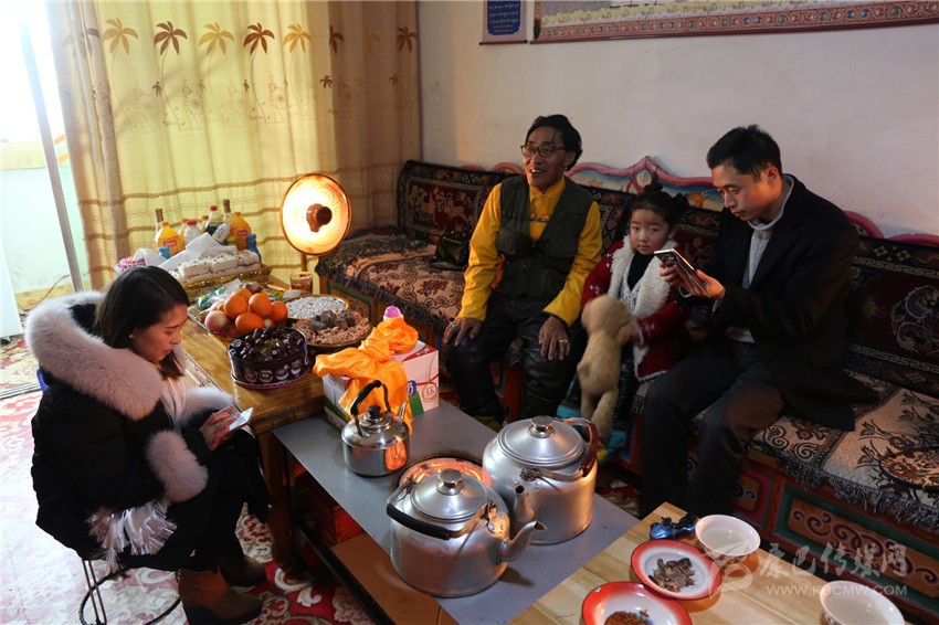 2月27日上午,色達(dá)退休干部秋呷老人正和孫女在家中收看康巴衛(wèi)視藏歷新年春晚,享受著屬于他們的節(jié)日。藏桌上擺滿了豐富的年貨,溫暖的家庭處處洋溢著新年的氣氛。