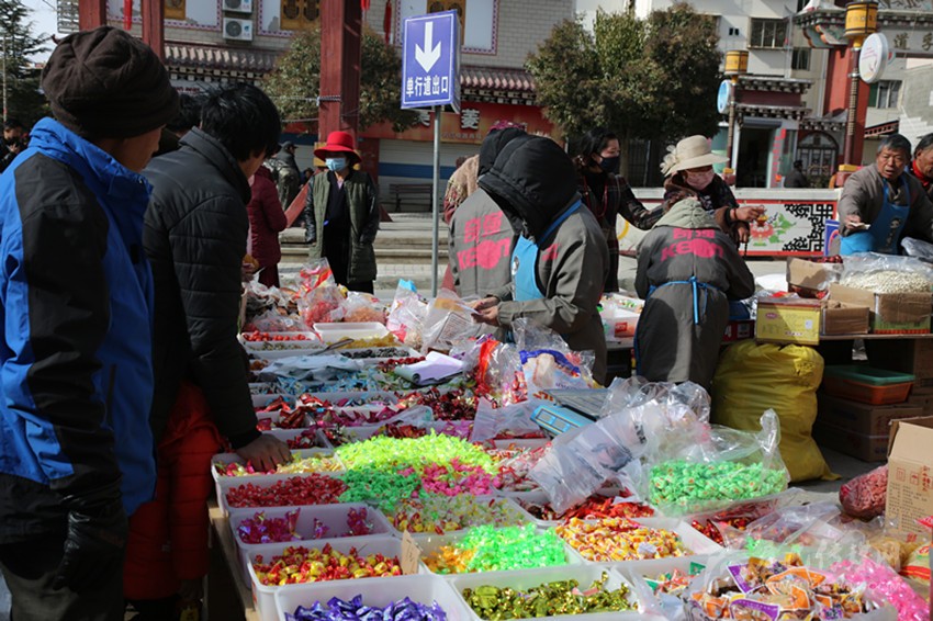 來自格西鄉(xiāng)的青志巴姆買了一大堆糖果,又到塑料制品攤點與攤主討價還價,用30元買了一個糖果盒?!耙酝枪S便放在桌上,既不好看又不衛(wèi)生;現(xiàn)在條件好了,也該講究講究。”她告訴記者,農(nóng)村集市貿(mào)易活動辦得好,商品集中,家里的年貨在集市里就辦齊了。