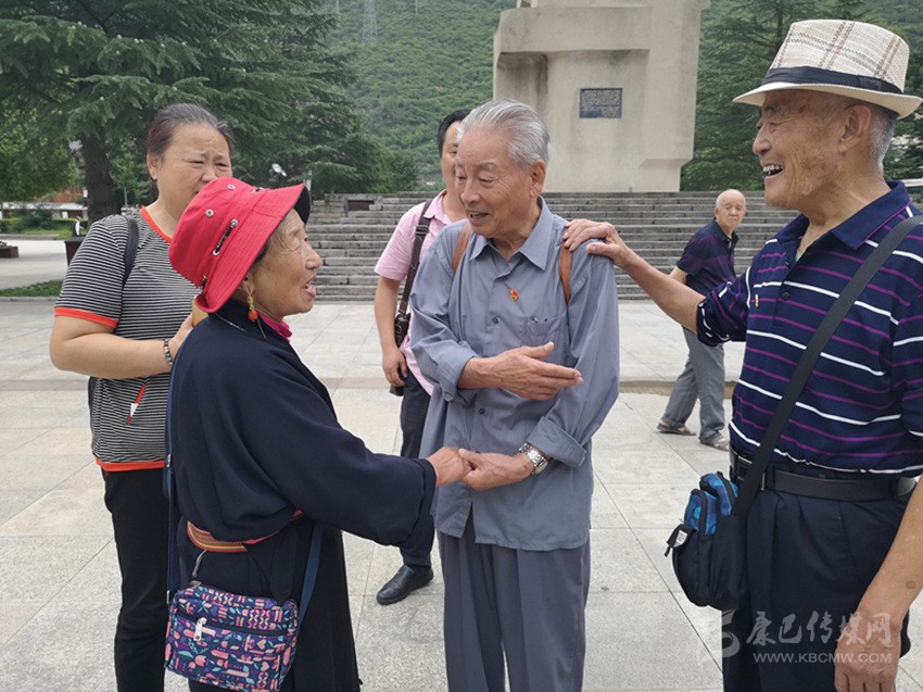 “哎呦,聶校長,我們快40年沒有見面了吧,沒想到在這里碰到了,您瘦了,白頭發(fā)增多了,其他沒變,還是像我的父親一樣,您一定要保重身體,我祝福您長命百歲。”在瀘定橋廣場上,今年60余歲,雅江籍退休人員劉桂英緊緊握住離休干部聶庭梅的手,激動不已。