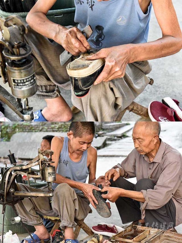 “三娃,今天來得早嘛!”尚未坐定,便有鄉(xiāng)鄰拿著鞋子走過來,“鞋跟脫膠了,修一哈。”