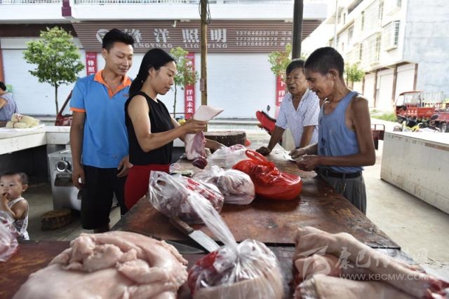 8月15日,南部縣長坪鎮(zhèn)農(nóng)貿(mào)市場,正在買肉的周強(qiáng)善。攝影 張可凡