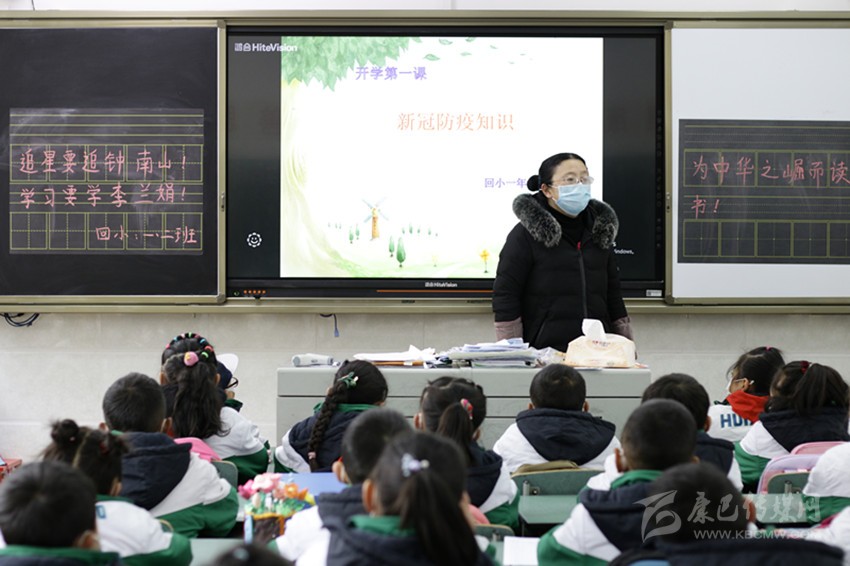 走進(jìn)熟悉的校園里,遇見(jiàn)久違的老師與同學(xué),即使戴著口罩也遮不住同學(xué)們的激動(dòng)之情。課堂里,開(kāi)學(xué)后的第一課不是語(yǔ)文,不是數(shù)學(xué).....而是一節(jié)特別的防疫主題課。