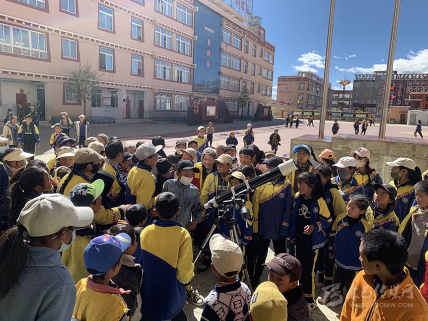 理塘縣第四完全小學(xué)是個牧區(qū)寄宿制學(xué)校,這也為孩子們夜晚觀測星空創(chuàng)造了機(jī)會?!疤煳纳缟鐔T每周有兩次利用天文望遠(yuǎn)鏡觀測的機(jī)會?!蓖踅险f,每次社員們在觀測時,后面總會跟來一群低年級的學(xué)生。