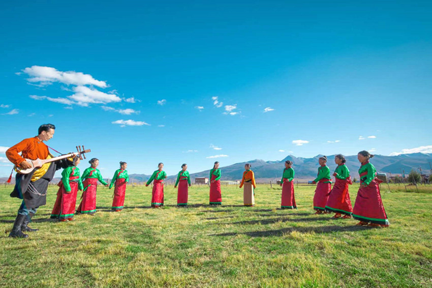 澤仁彭措是位“半路出家”的鄉(xiāng)村音樂教師?!靶r候就對音樂特別感興趣,但那時候家里沒條件,很難有機會系統(tǒng)地學習音樂知識?!遍L大后,澤仁彭措成為一名教師。工作之余,他始終保持著對音樂的熱愛,自學了札木聶和弦子等樂器。