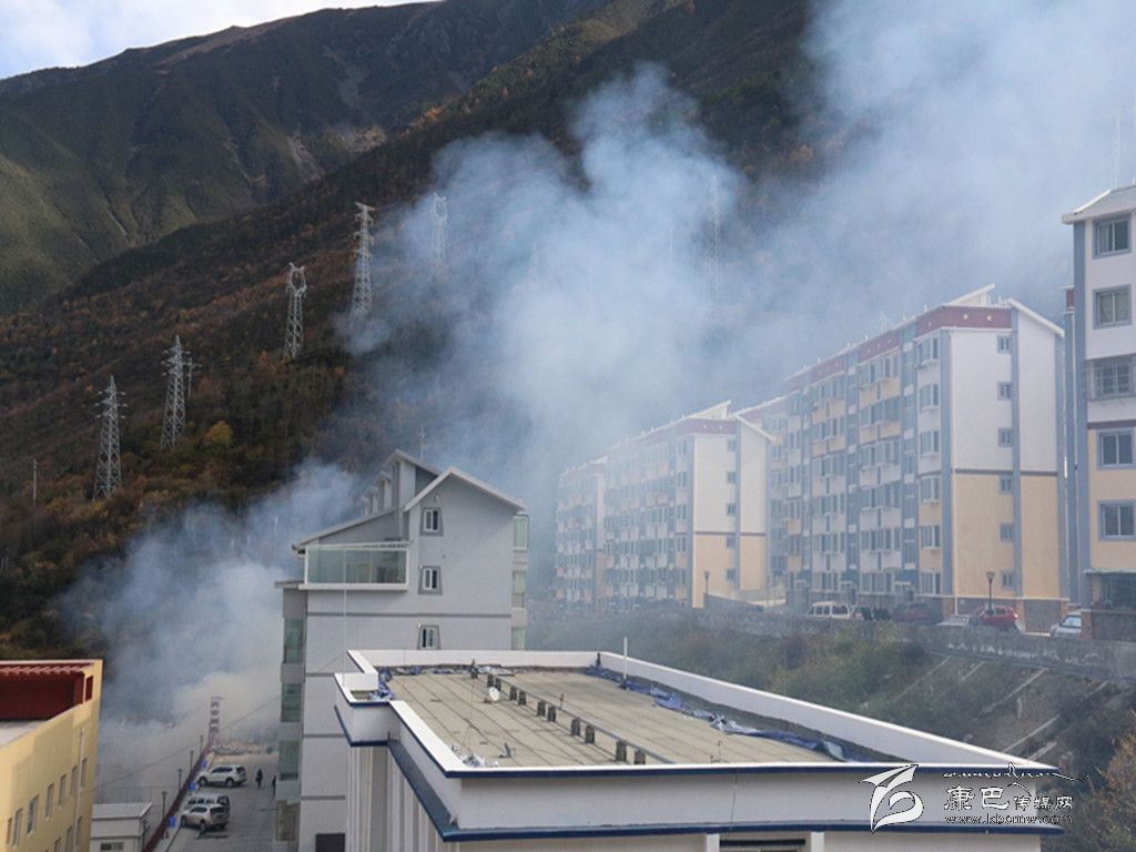 在康定新區(qū)的這片空地上記者看到,本應運走的垃圾,卻被就地焚燒,滾滾濃煙彌漫著整個天空,能見度不足十米??諝庵袕浡瘫堑臍馕?,嗆得過往行人捂住口鼻疾行而過。