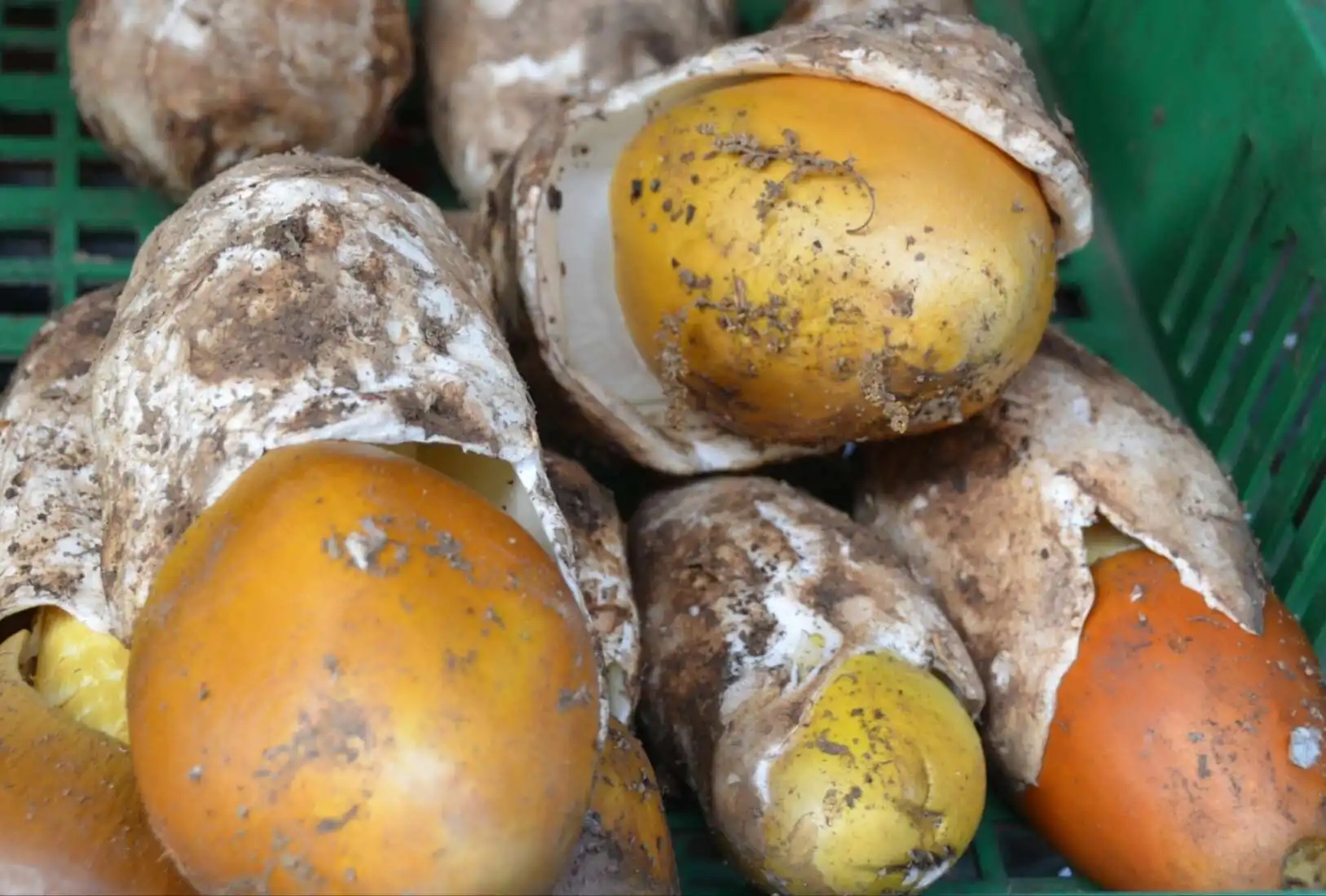 雞蛋菌,又稱橙蓋傘,橙蓋鵝膏菌,黃羅傘,白橙蓋鵝膏菌。因像極了雞蛋而得名。子實(shí)體大型,菌蓋形成初期卵圓形至鐘形,后漸平展,中部稍凸起,鮮橙黃色至桔紅色,光滑,粘,邊緣具明條紋。菌肉白色,較厚,菌把圓柱形,淡黃色。菌托大,苞狀,白色,傘未張開時(shí)包裹在白色的菌托里很萌,所以有了雞蛋菌的別稱。