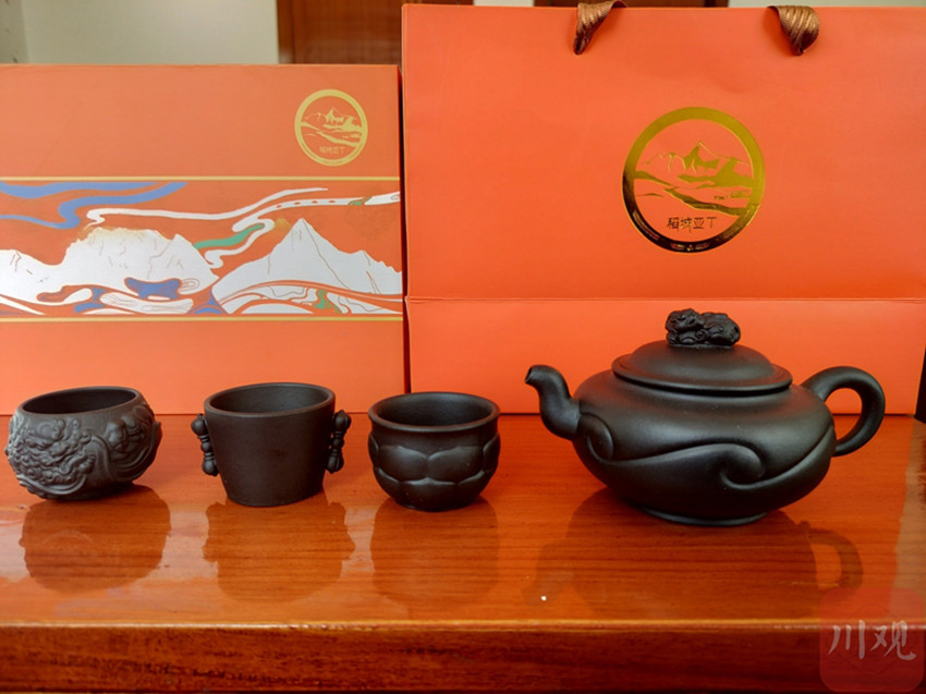 活動(dòng)當(dāng)天,該中心首批“亞丁”文創(chuàng)茶具也出窯亮相。此次出窯的“亞丁”文創(chuàng)茶具為央邁勇、仙乃日、夏諾多吉套壺。